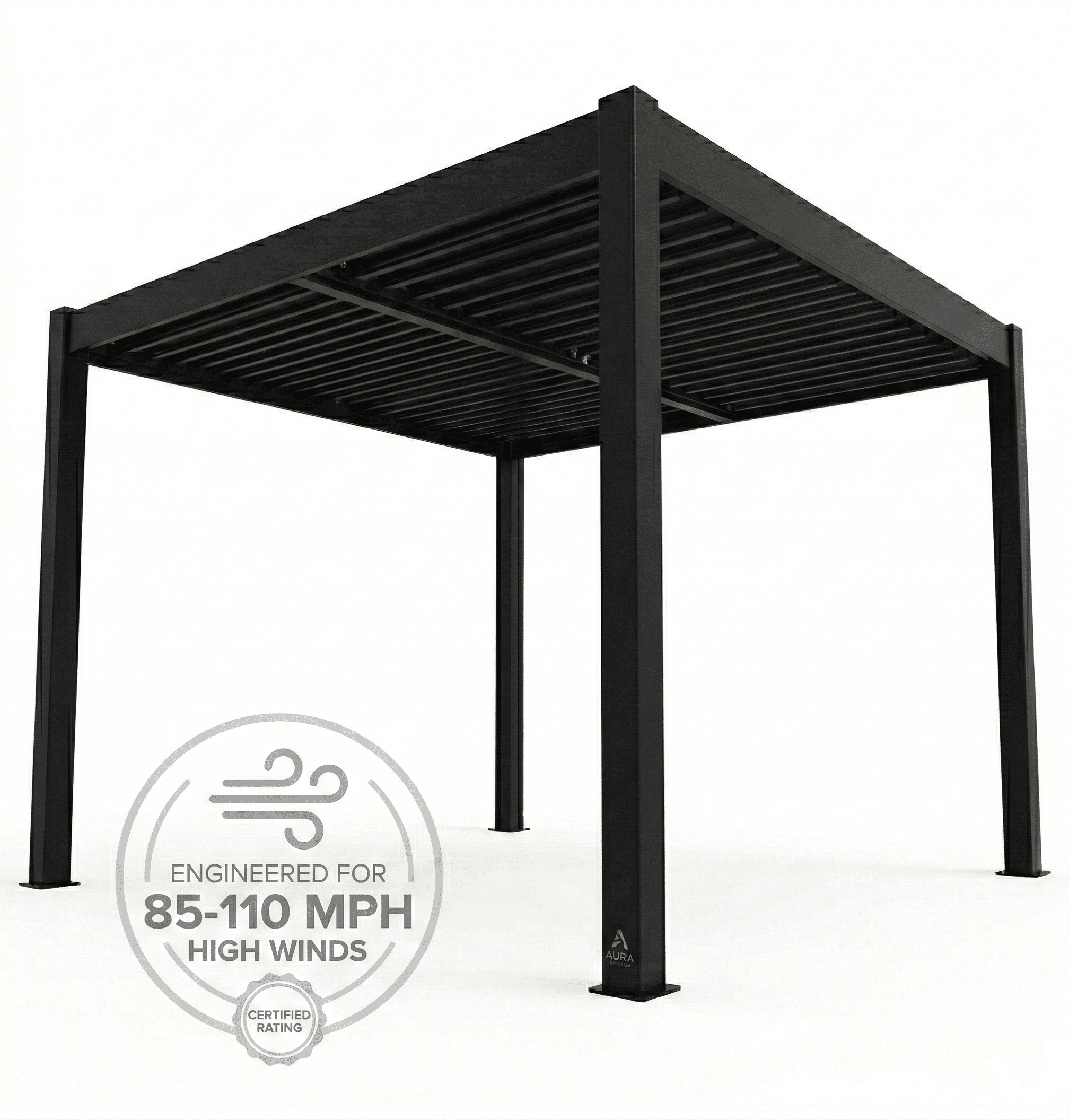 When fully closed, our pergola louvers form a solid, protective surface designed to withstand winds between 85–110 mph. This reduces wind pressure on the structure and provides added strength and stability for your peace of mind.