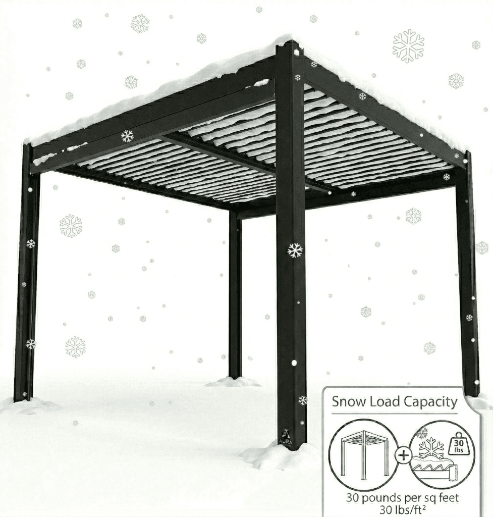 When the louvers are fully closed, our pergolas are designed to support snow loads up to 30 lbs per square foot. The closed louvers create a solid surface that helps distribute the weight of snow evenly, keeping the structure strong and reliable even during snowy conditions.